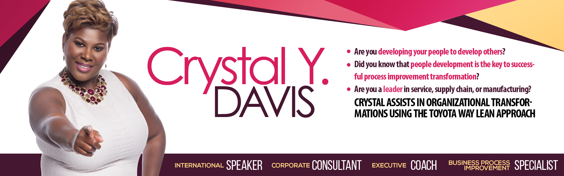Crystal Y. Davis is currently accepting opportunities as a keynote speaker in categories to include women’s empowerment, leadership, process excellence, lean and six sigma. For more information or media inquiries please contact crystal@crystalydavis.com.